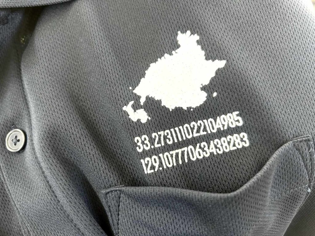 左胸には、宇久島全体図と、たくさんの数字が並んでいます。